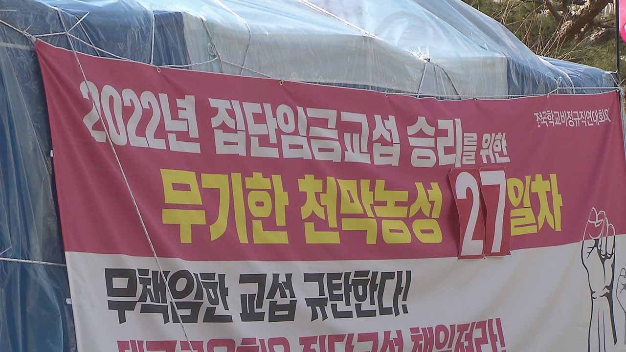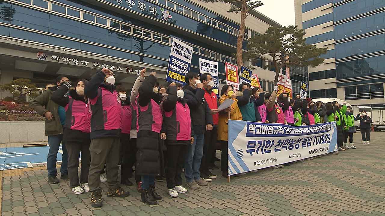 교육 당국은 채용이나 근무 여건 등 여러 이유로 만족스럽지 못한 조건을 제시하고 있고, 그렇다 보니 계속해서 실무교섭도 하고 있습니다만 좀처럼 진전을 보이지 않고 있습니다.
