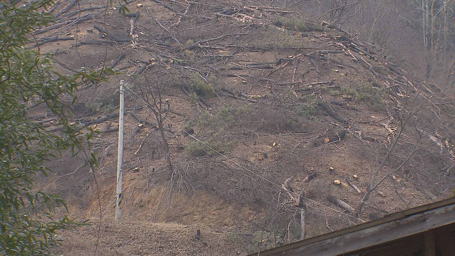 화마가 지나간 자리에는 시커멓게 타죽은 나무만 잘려 나간 채 버려져 있습니다.