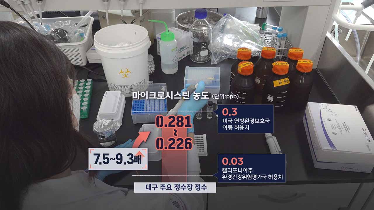 대구문화방송은 2022년 7월 말 대구 주요 정수장 3곳의 정수에 대해 녹조의 독성물질인 마이크로시스틴이 있는지 관련 분야 권위자인 부경대학교 이승준 교수에게 검사를 맡겼습니다.