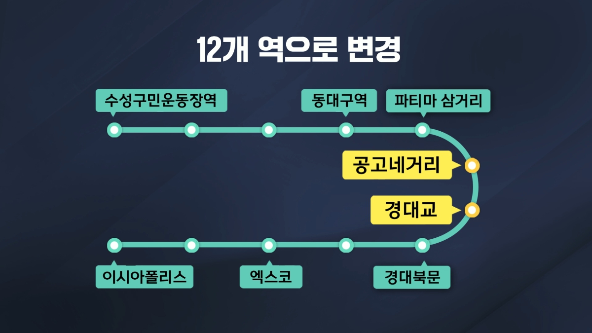 이번에 경대교역을 추가해 12개 역으로 늘렸습니다.