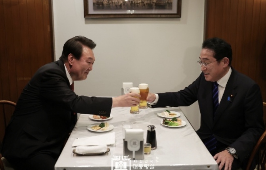 이어 "양국 정상 간 셔틀외교 복원, 문재인 정부가 국내정치 쇼의 불쏘시개로 써먹었던 한일군사정보보호협정(GSOMIA)의 정상화, 반도체 3대 핵심 소재 수출규제 해제 등 주목할만한 성과에도 불구하고, 민주당은 덮어놓고 "윤석열 정권이 일본의 하수인이 됐다", "일본에 조공을 바치고 화해를 간청하는 항복식"이라는 황당한 궤변에 매달리고 있다"며 지적했습니다.