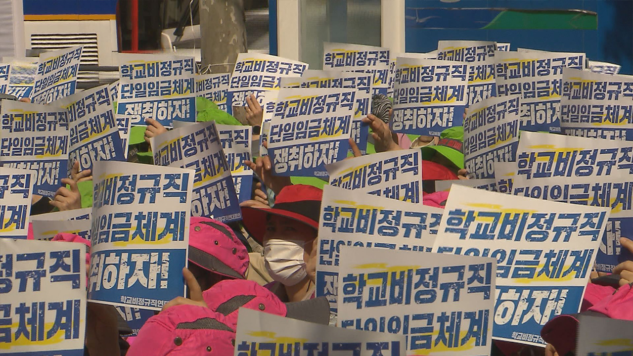 학교의 역할은 학업에서 복지로 점점 확대되는 가운데 고용 형태에 따른 임금과 처우 차이로 교육 현장의 갈등은 갈수록 커지고 있습니다.