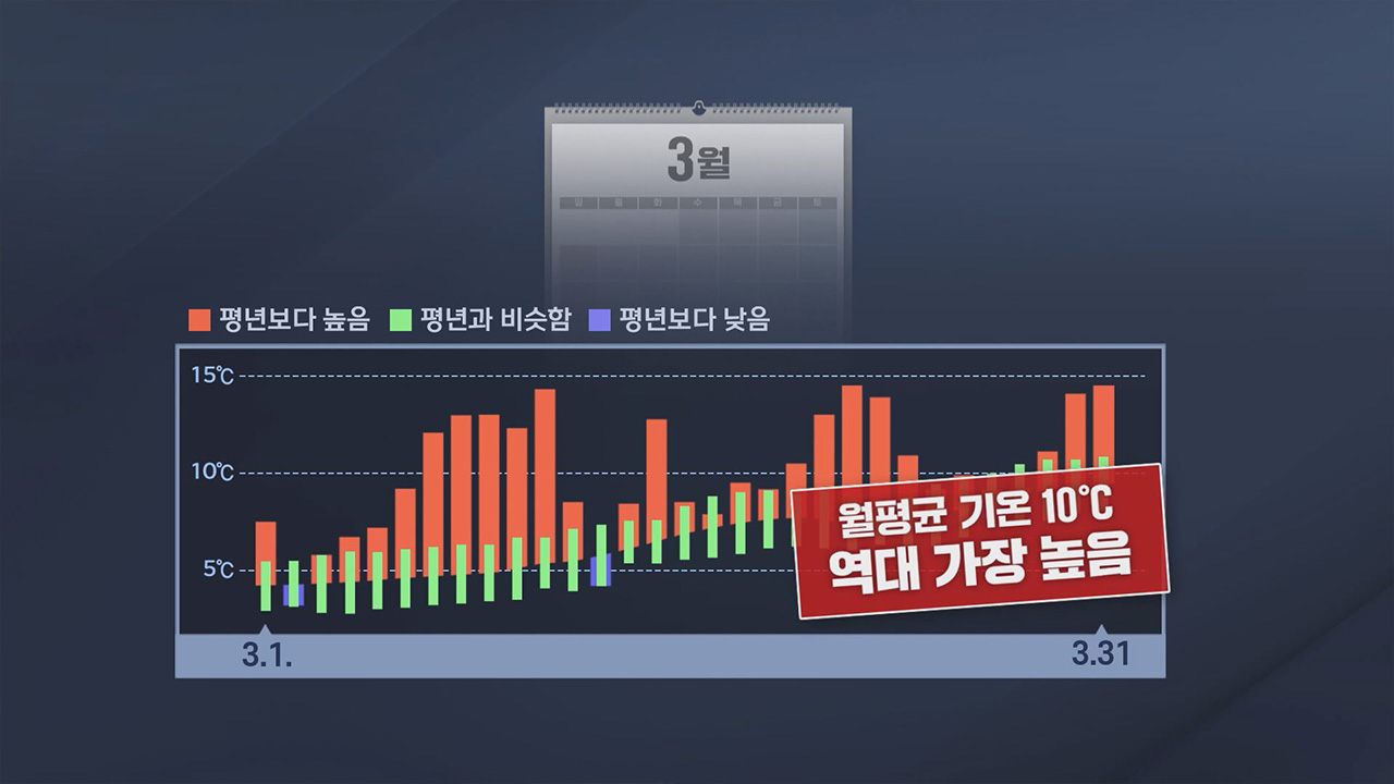 또 3월엔 낮 최고 기온이 이틀에 한 번꼴로 20도를 웃돌면서 월 평균 기온이 10도로 1973년 이후 역대 가장 높았습니다.