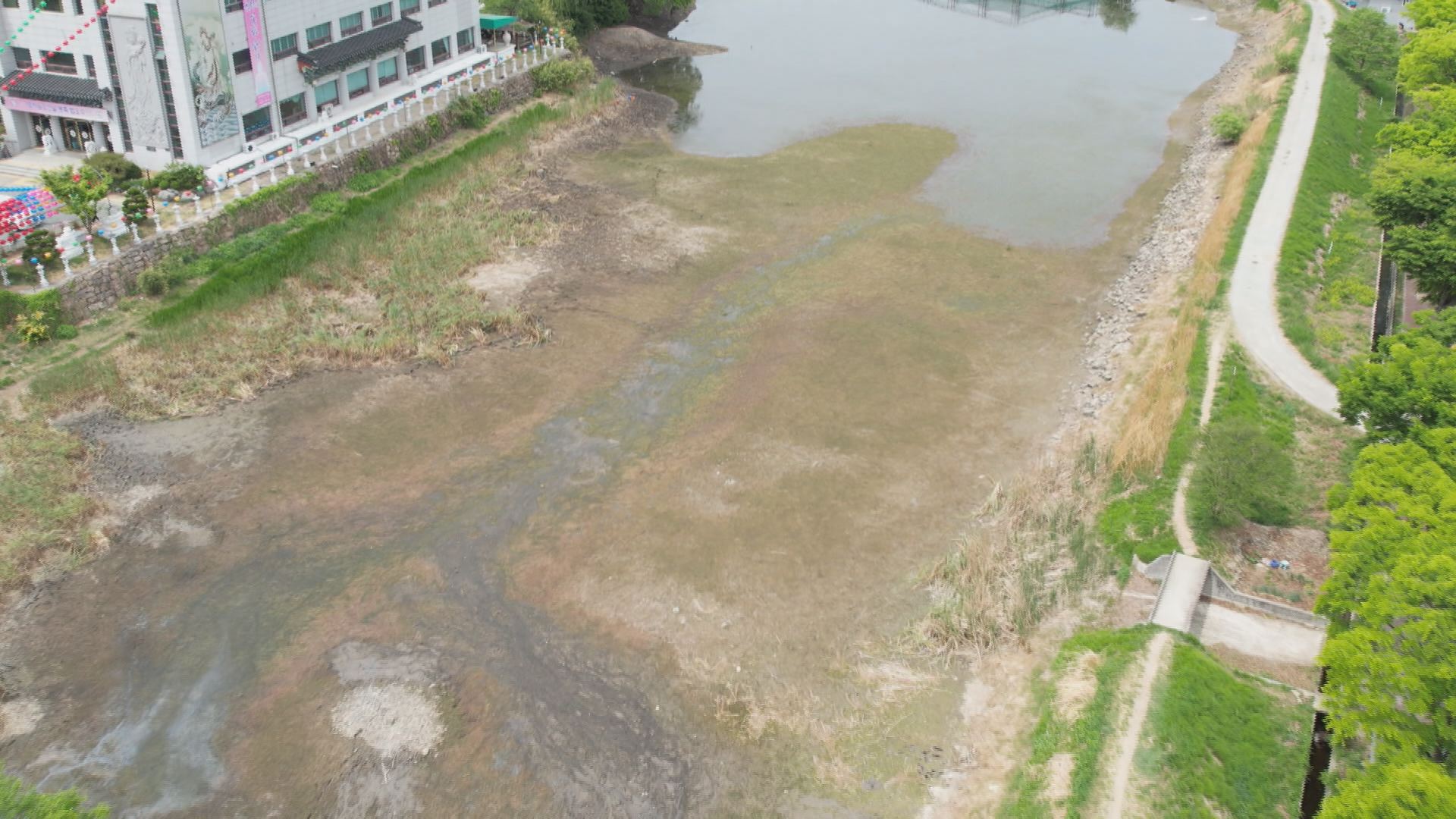 전국 최대의 두꺼비 산란지인 망월지에 난데없이 물이 사라져 버렸습니다.