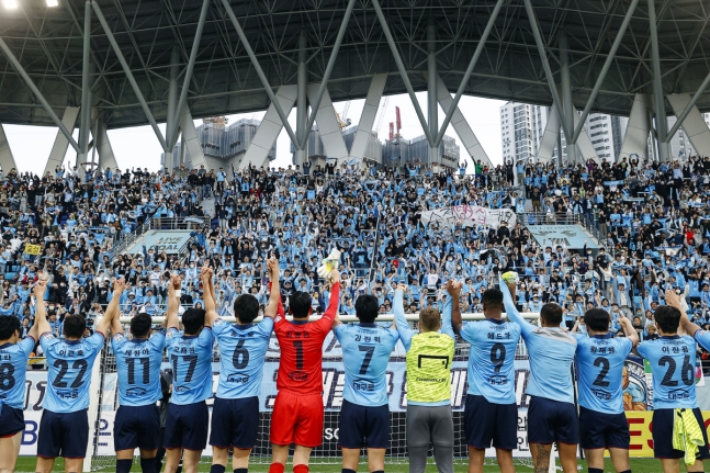 대구 관계자와 대구FC 공식 서포터즈 그라지예 역시 영웅시대가 보여준 응원과 존중에 감사를 전하며 승리의 기쁨을 함께 나눴습니다.