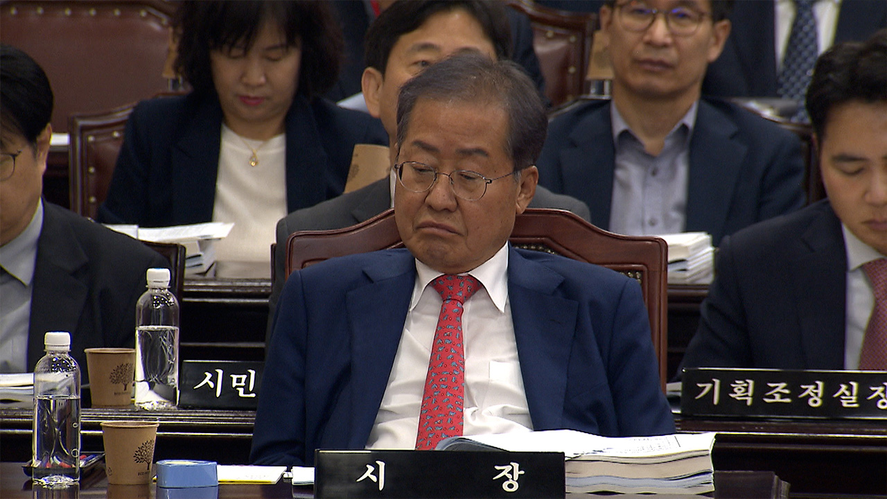 홍 시장은 내내 어두운 표정으로 눈을 감고 들었는데요.