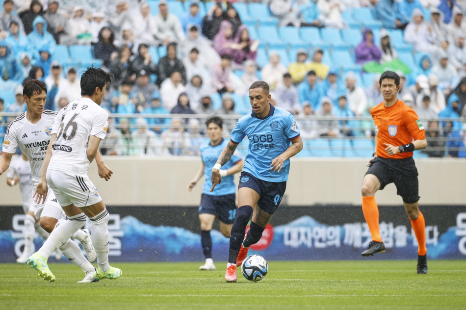 역대 통산전적에서 13승 17무 22패로 열세인 데다, 최근 10경기 전적도 2승 5무 3패를 기록하며 근소하게 밀렸던 대구는 지난 1라운드 원정 개막전에서도 경기 막판 2골을 내리 허용하면서 2대 3으로 아쉬운 패배를 기록했습니다.