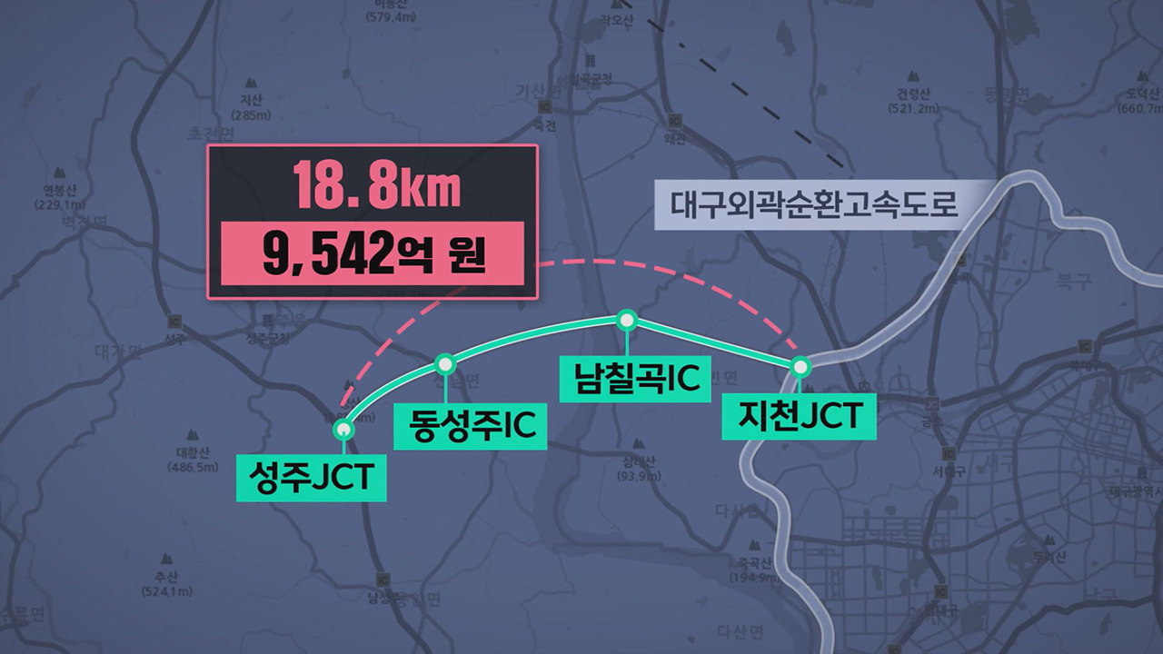 성주군은 이번에는 대구와 인근 지역을 한 시간 생활권으로 조성하기 위한 사업으로, 사드 배치 이후 주민지원 사업이 미비했던 점, 대구 농수산물도매시장의 달성군 이전에 따른 교통량 증가를 내세운다는 전략입니다.