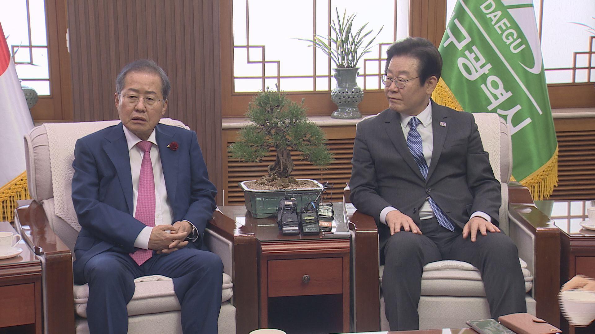 홍 시장은 이재명 대표와 만난 자리에서 "윤석열 정권이 대부분 정치를 잘 모르는 사람들이 대통령실에 있다"며 "거대 야당인 민주당이 도와줘야 나라가 안정된다. 대화와 타협으로 국정을 풀어 나가주면 참 좋겠는데 그게 안 되니 안타깝다"고 지적했습니다.