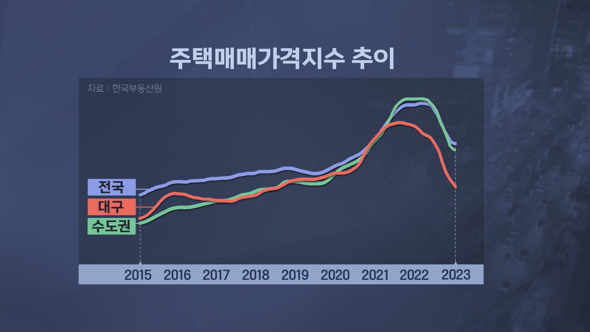 천정부지로 오르던 대구의 집값이 폭락에 가까운 하락세로 돌아선 지 2년이 다 돼 갑니다.