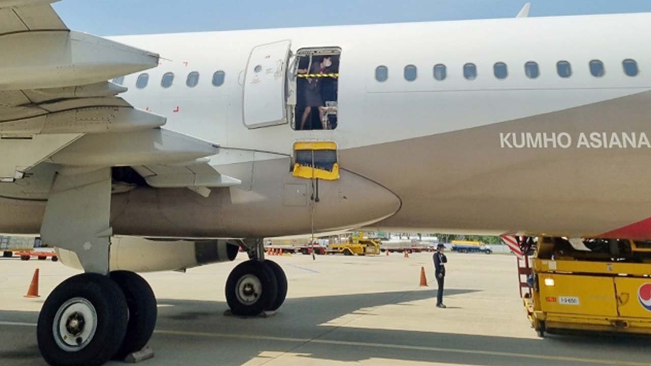 착륙 직후, 그러니까 바퀴가 지상에 닿아 이동할 때 비상문을 연 30대가 안전벨트를 풀고 뛰어내리려 했고요.