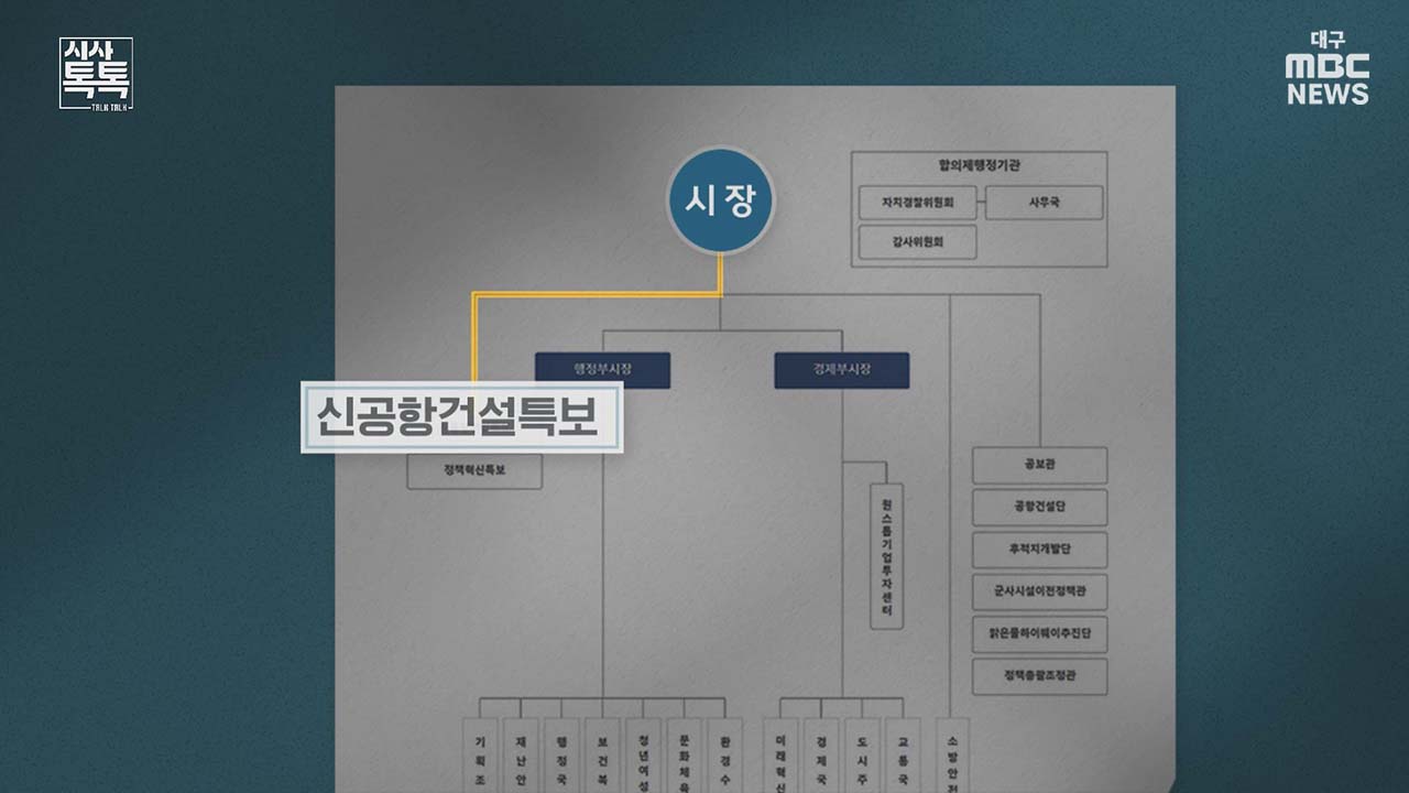 이게 왜 문제가 되냐 하면 특보, 즉 특별보좌관은 단체장이 정책을 결정하는 데 보좌하는 역할만 하도록 돼 있습니다. 그런데 산하 조직에 공항건설단과 후적지 개발단을 두고 5개 과와 관, 14개 팀을 거느리는 직위와 직무를 부여한 것으로 이건 지방자치단체가 해서는 안 되는 인사입니다.