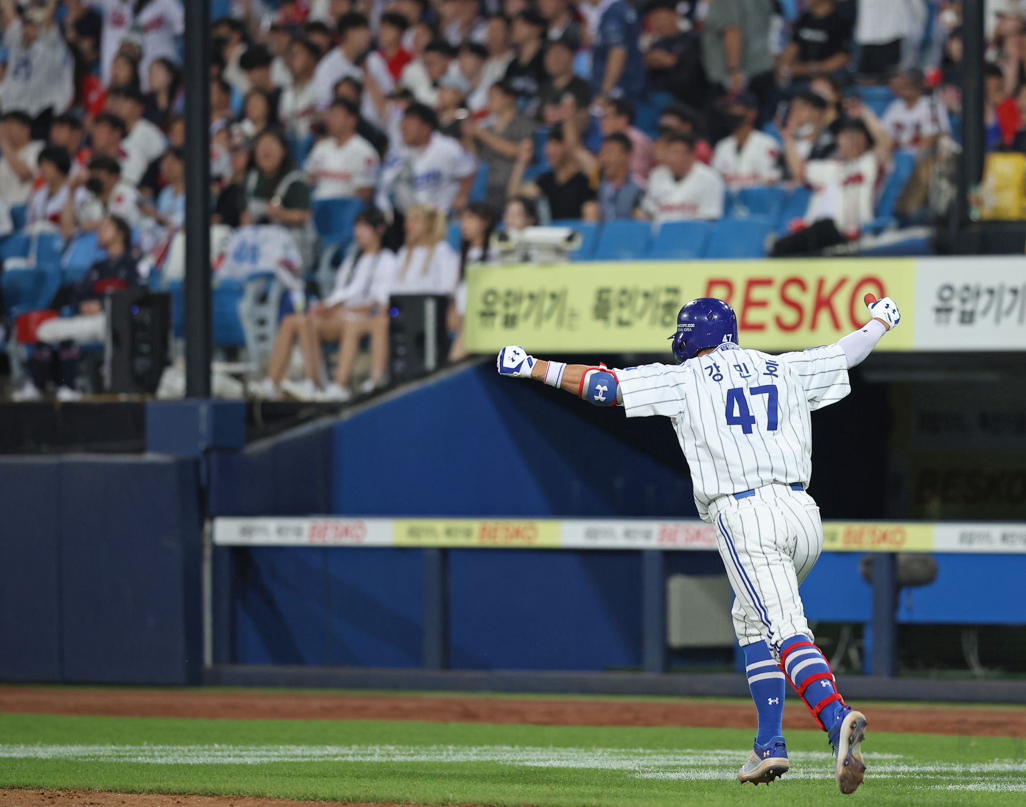 연장전에서 역전패를 눈앞에 뒀던 삼성은 10회말 김영웅의 2루타를 시작으로 김현준의 적시타로 동점을 만들더니, 결국 강민호가 좌측 담장을 넘기는 끝내기 2점 홈런으로 길었던 승부에 마침표를 찍습니다.