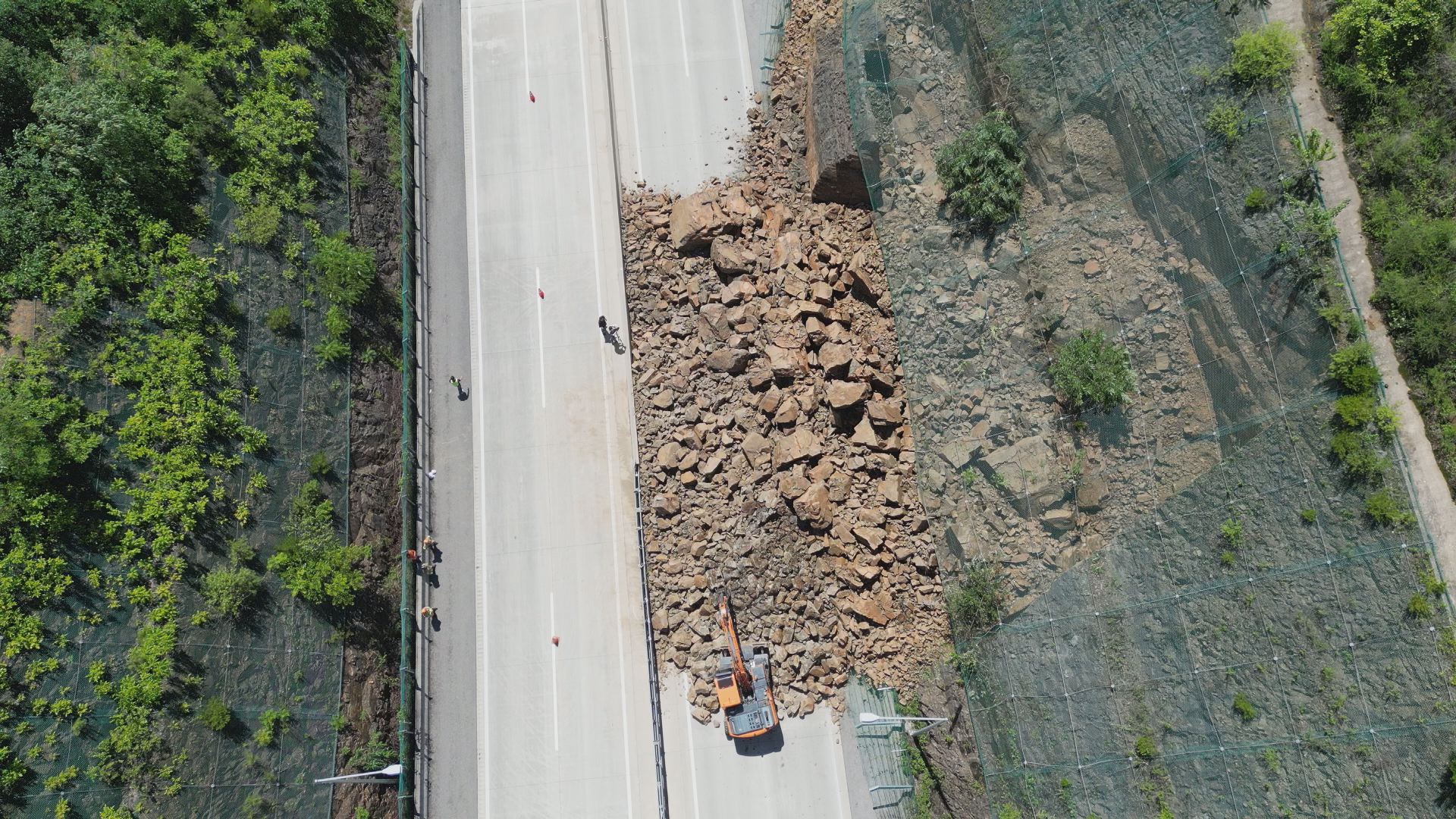7월 5일 오전에 다녀온 현장은 산에서 쏟아진 돌 더미와 흙으로 고속도로가 완전히 뒤덮인 모습이었습니다.