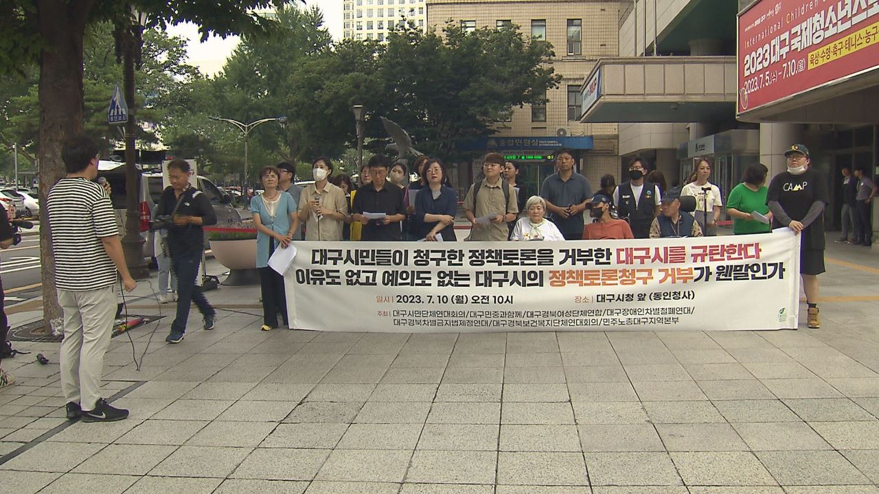 이른바 구급차 뺑뺑이 사망 사건 이후 대구시의 응급의료 대응체계에 대해서도 보건·의료 단체를 비롯한 시민 800여 명이 정책 토론을 요구했는데, 대구시는 모두 하지 않겠다고 통보했습니다.