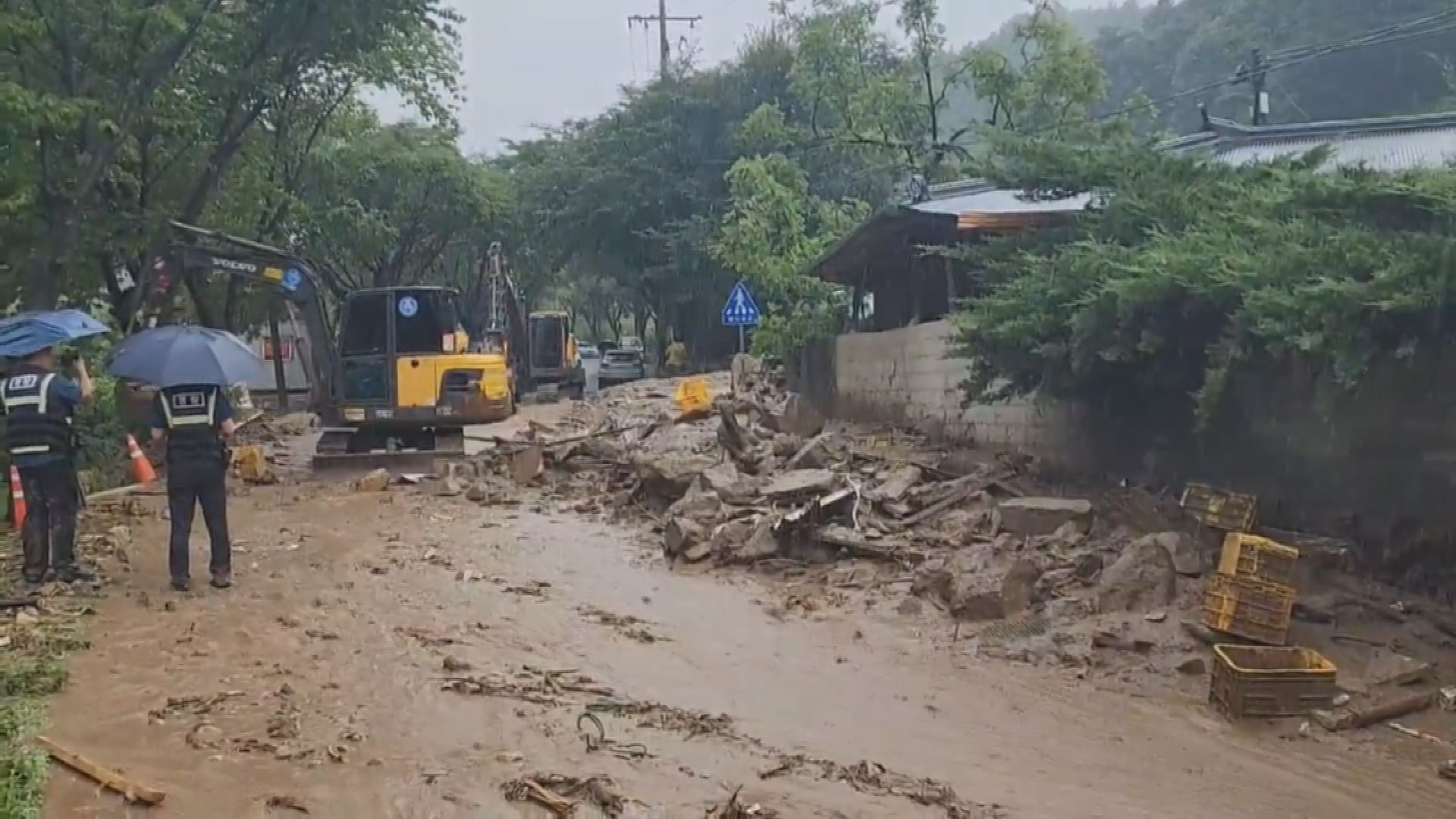 소방과 지자체 등에서 긴급 구조에 나섰지만 마을 주변 하천 물이 크게 불어난 데다 도로도 곳곳이 매몰돼 진입에 어려움을 겪고 있습니다.