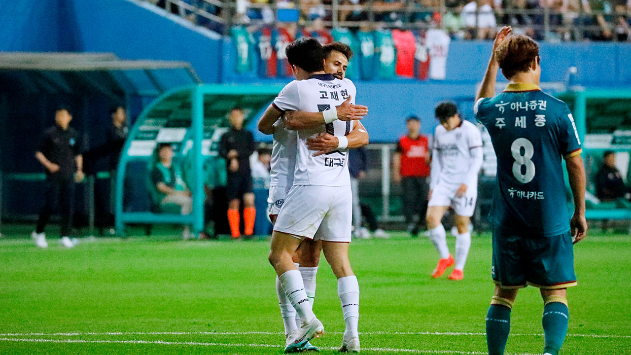 승점 3점 차에 자리한 중위권 팀의 상황은 만만치 않습니다. 5위 대구(승점 33점 득점 27)의 우위는 위태롭습니다. 9위 인천(승점 30점 득점 25)조차 다음 라운드 최대 5위까지도 가능한 상황이죠. 이 가운데 5위 대구는 7위 대전과 만납니다. 승점 6점짜리 경기라는 평이 흔히 나올 수 있는 맞대결입니다.