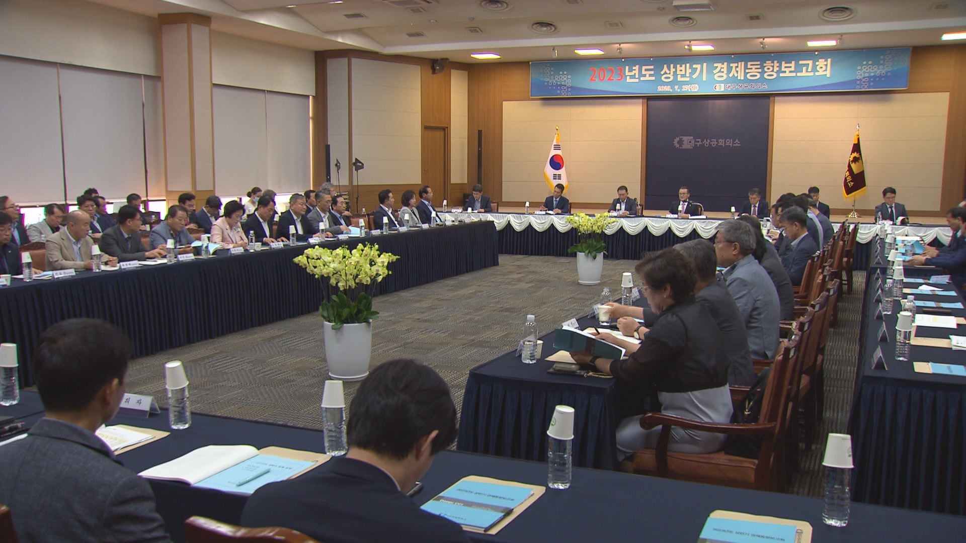 대구상공회의소는 7월 17일 오후 본관 건물에서 이재하 대구상공회의소 회장을 비롯해 이종화 대구 부시장, 권태용 한국은행 대구경북본부장 등 지역 경제계 인사들이 모인 가운데 '2023년 상반기 경제 동향 보고회'를 열었습니다.