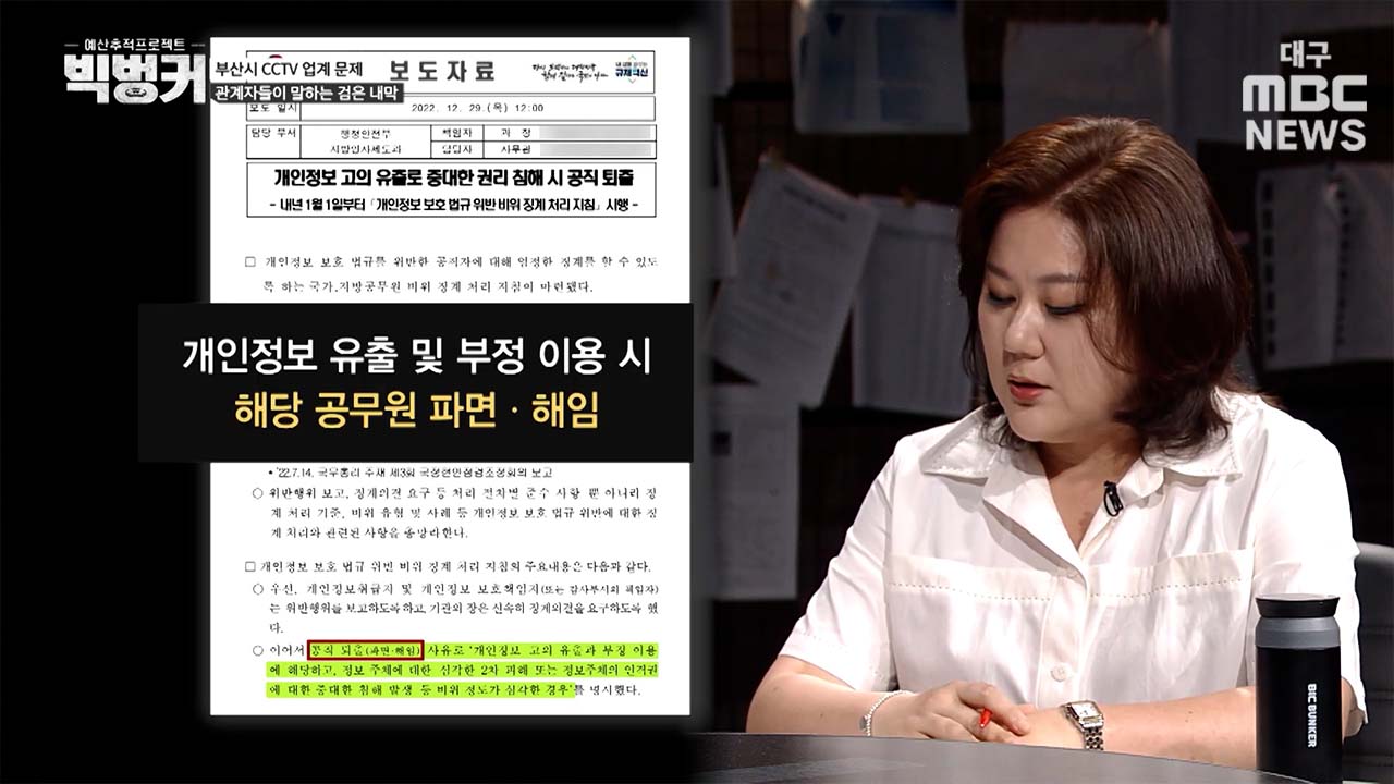 우지영 나라살림연구소 수석연구위원 "이거 그냥 넘어갈 일이 아니에요. 국가·지방공무원 비위 징계 처리 지침에 의하면 공무원이 개인 정보를 유출해 중대한 침해가 발생한 경우 한 번만 적발돼도 파면 또는 해임이라는 처벌을 받습니다. 이건 담당 공무원, 그리고 이 업체 대표가 굉장히 큰 실수를 한 거예요. 이렇게 연락을 하게 한 것 만으로도 이 업체와 공무원이 밀접하게 소통하고 있다고 스스로 증명한 꼴이거든요?"