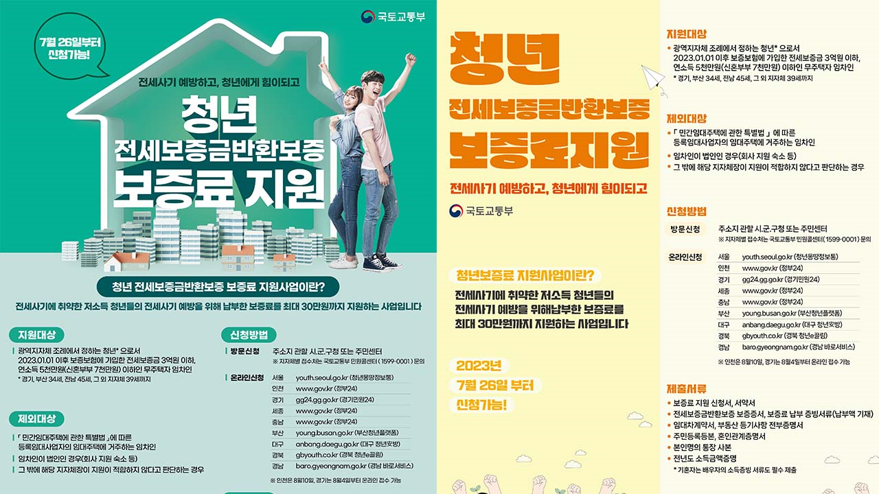2023년 1월 1일 이후 전세금 반환보증에 가입한 만 15세 이상 39세 이하 청년으로 임차 보증금 3억 원 이하, 연 소득 5천만 원 이하면 신청할 수 있고 신혼부부의 경우 연 소득 7천만 원 이하면 신청이 가능합니다.
