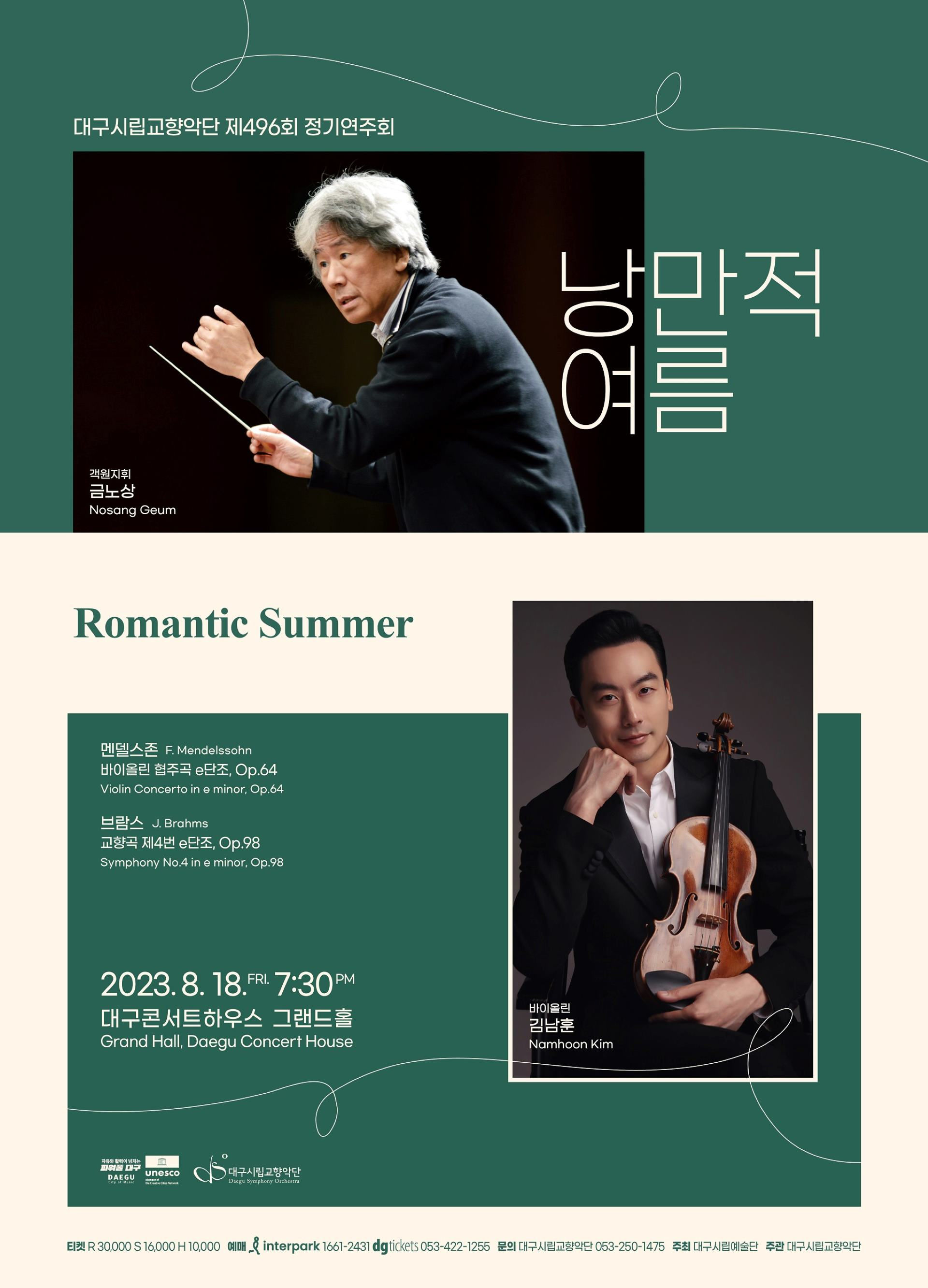 대구시립교향악단은 8월 18일 대구콘서트하우스 그랜드홀에서 제496회 정기연주회를 개최합니다.