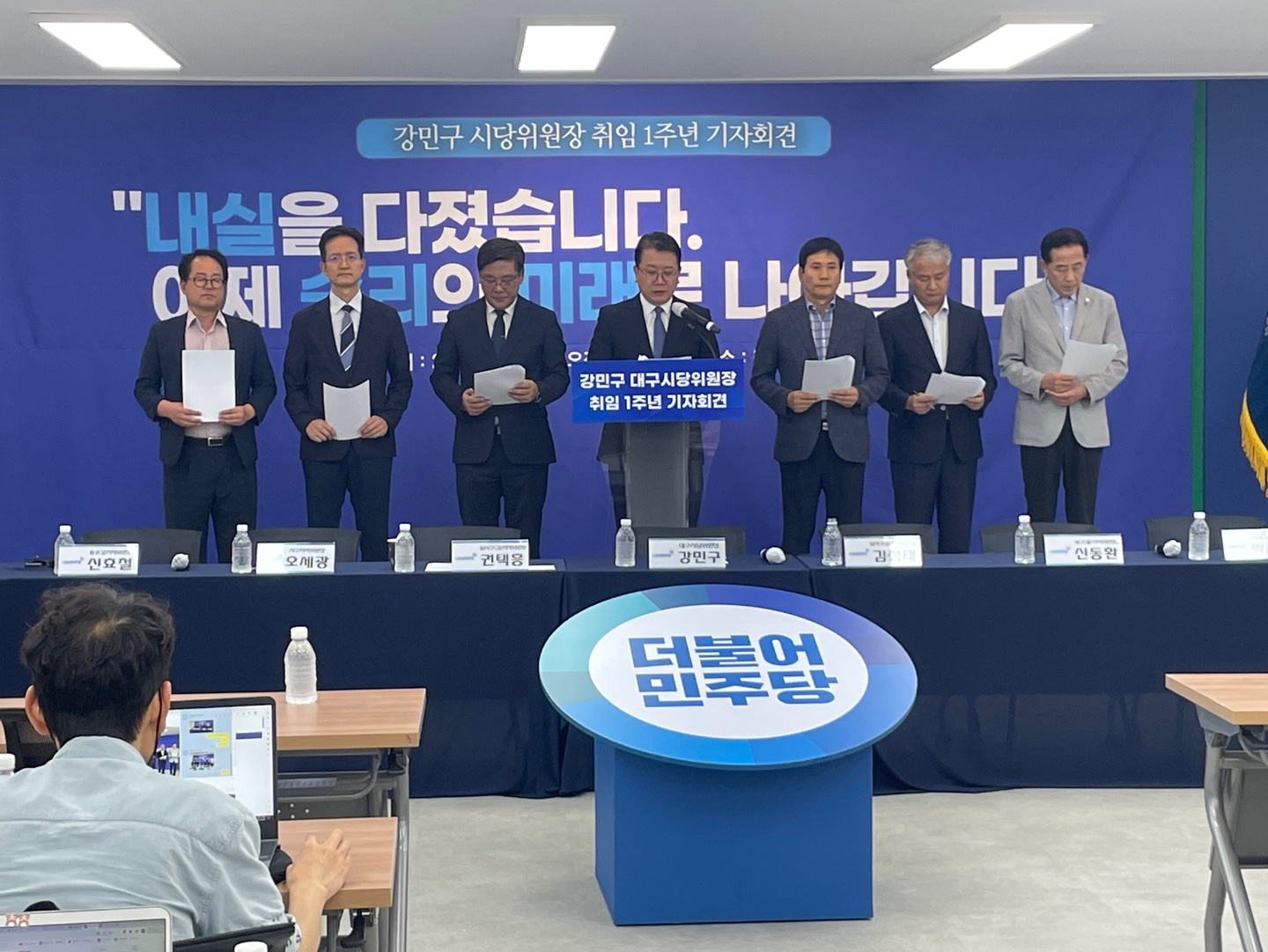 강민구 더불어민주당 대구시당위원장은 취임 1년 기자회견을 열고 "시민의 행복에 기여하는 '소확행' 공약을 개발하고, 다양한 지역 민심을 알아가며 시민과 호흡하겠다"고 밝혔습니다.