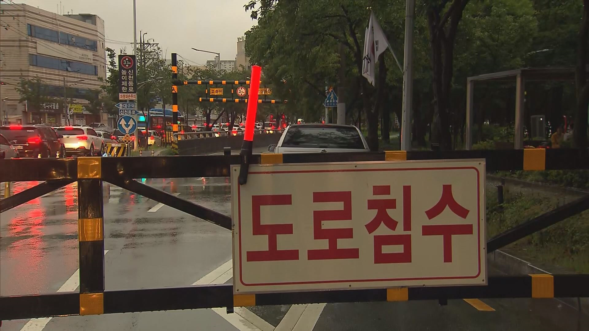 신천대로 도청교 하단 우회도로 200m, 서변대교 하단 지하도 1.1㎞ 구간 등 오전 10시까지 모두 14곳이 침수 우려에 대비해 통제됐습니다.