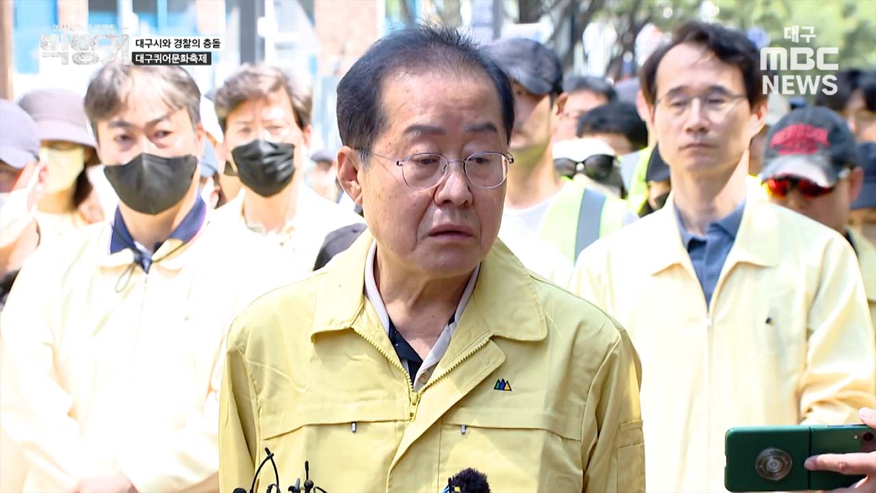 결국 홍준표 시장이 현장에 나타나 직접 정리(?)했는데요, "내가 검사 출신인데 경찰청장보다 법을 모를 것 같냐"고 호통치며 대구지방경찰청장에게 책임을 물을 것이라고 했습니다. 축제는 예정대로 진행됐지만 유례없는 행정 대집행으로 말들이 많았습니다.