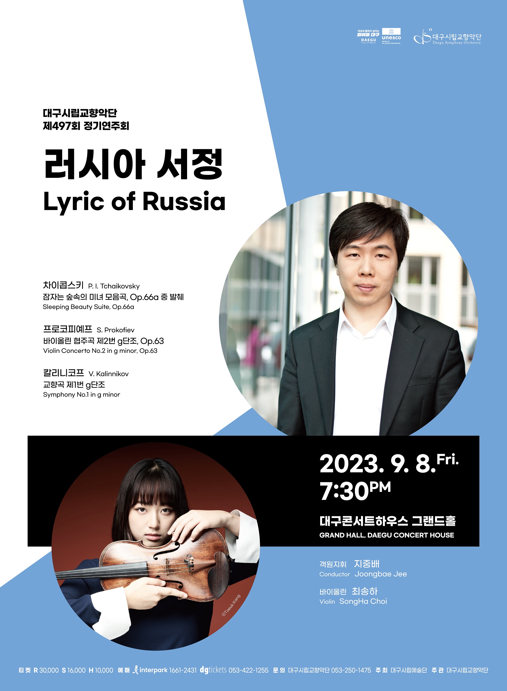대구시립교향악단은 9월 8일 대구콘서트하우스에서 제497회 정기연주회를 갖습니다.