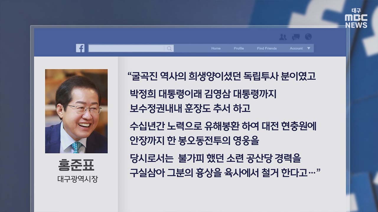 그런데 논란이 되는 사안에 대한 설명은 부실했습니다. 처음에는 홍 장군이 독립군을 무장해제 시킨 자유시 참변에 개입된 걸 '문서'로 확인했다고 했습니다.