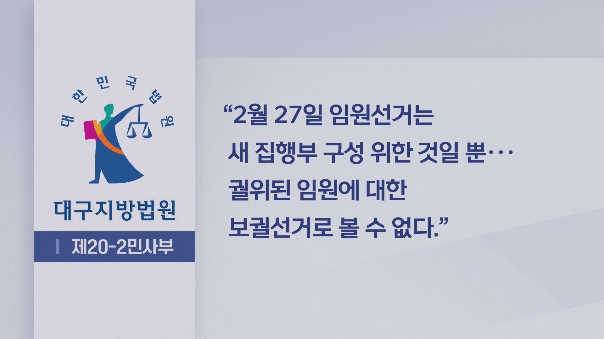 여기에 대해 대구지방법원 제20-2 민사부는 가처분 신청을 기각하고 이 의장의 손을 들어줬습니다.