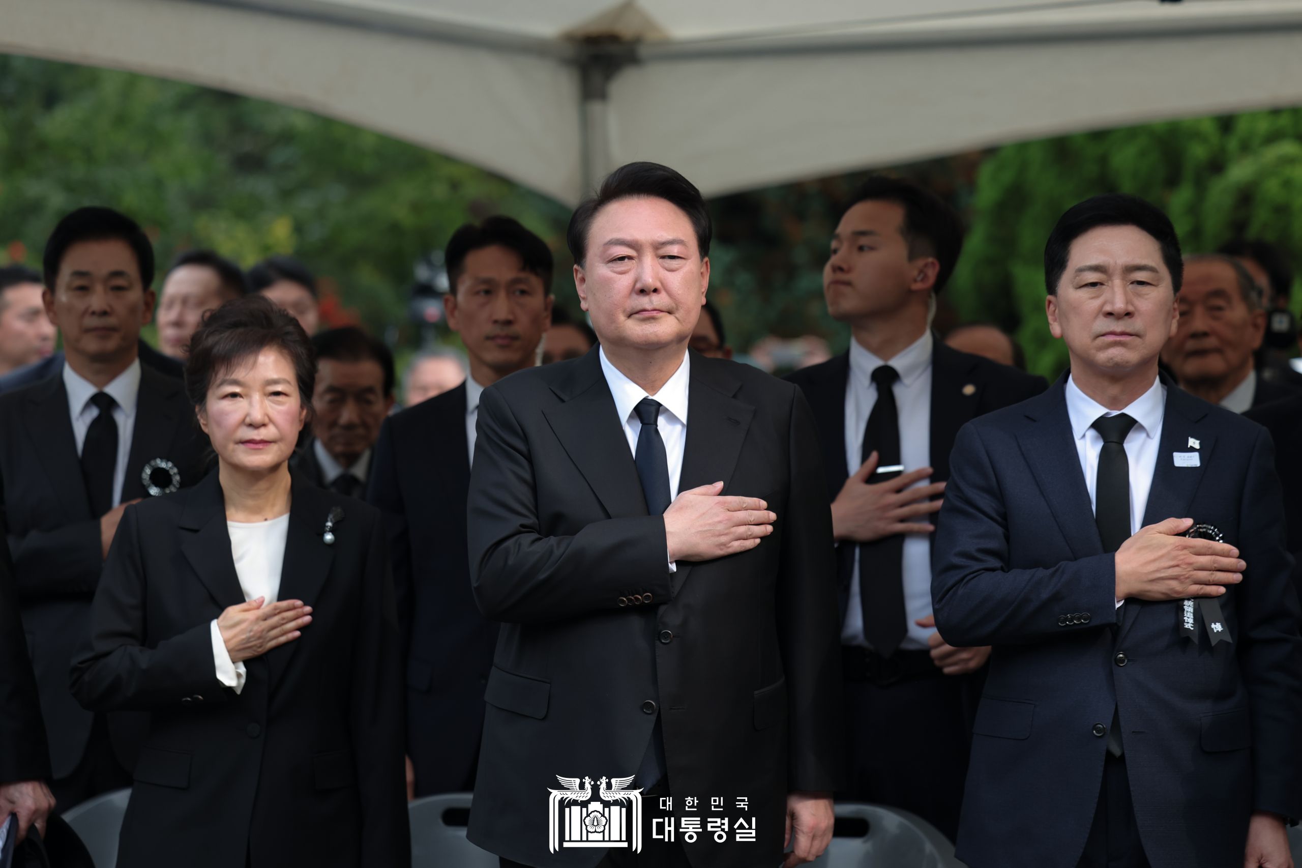 "하지만 우리 위대한 국민은 이 모든 어려움을 이겨냈고, 호국영령들의 보살핌으로 오늘의 번영을 누리고 있다"며 "아버지의 꿈이자, 저의 꿈이었고, 그리고 오늘 이곳을 찾아주신 여러분들의 꿈은 모두 같을 것"이라고 말했습니다.