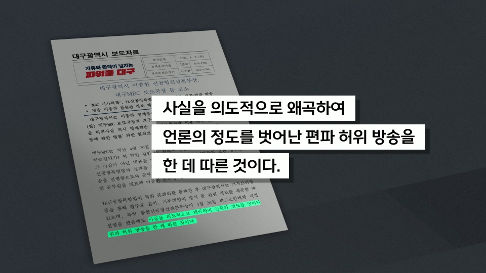 큰 주제는 대구시가 TK 신공항 건설을 두고 장밋빛 이미지를 시·도민에게 심어주고 있다는 겁니다.