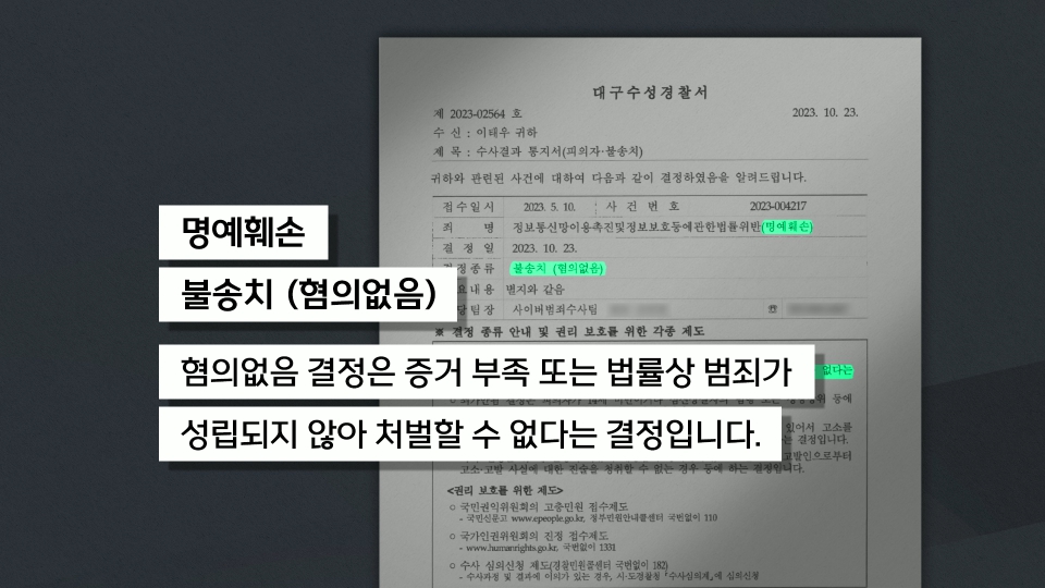 대구수성경찰서가 판단한 혐의 없음·각하