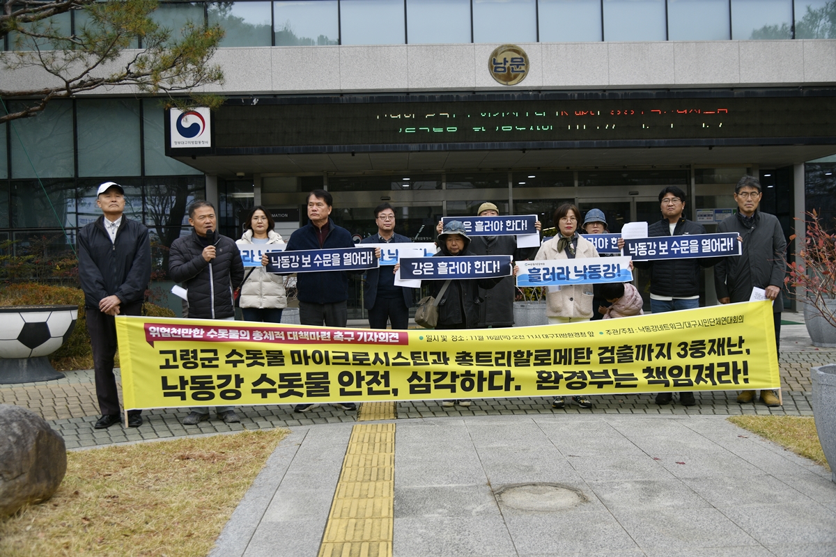 낙동강네트워크 등은 11월 16일 오전 대구지방환경청 앞에서 기자회견을 열어 “경북 고령군 수돗물에서 마이크로시스틴이 기준치(1ppb)보다 두 배에 육박하는 1.9ppb가 검출됐다.”라고 밝혔습니다.