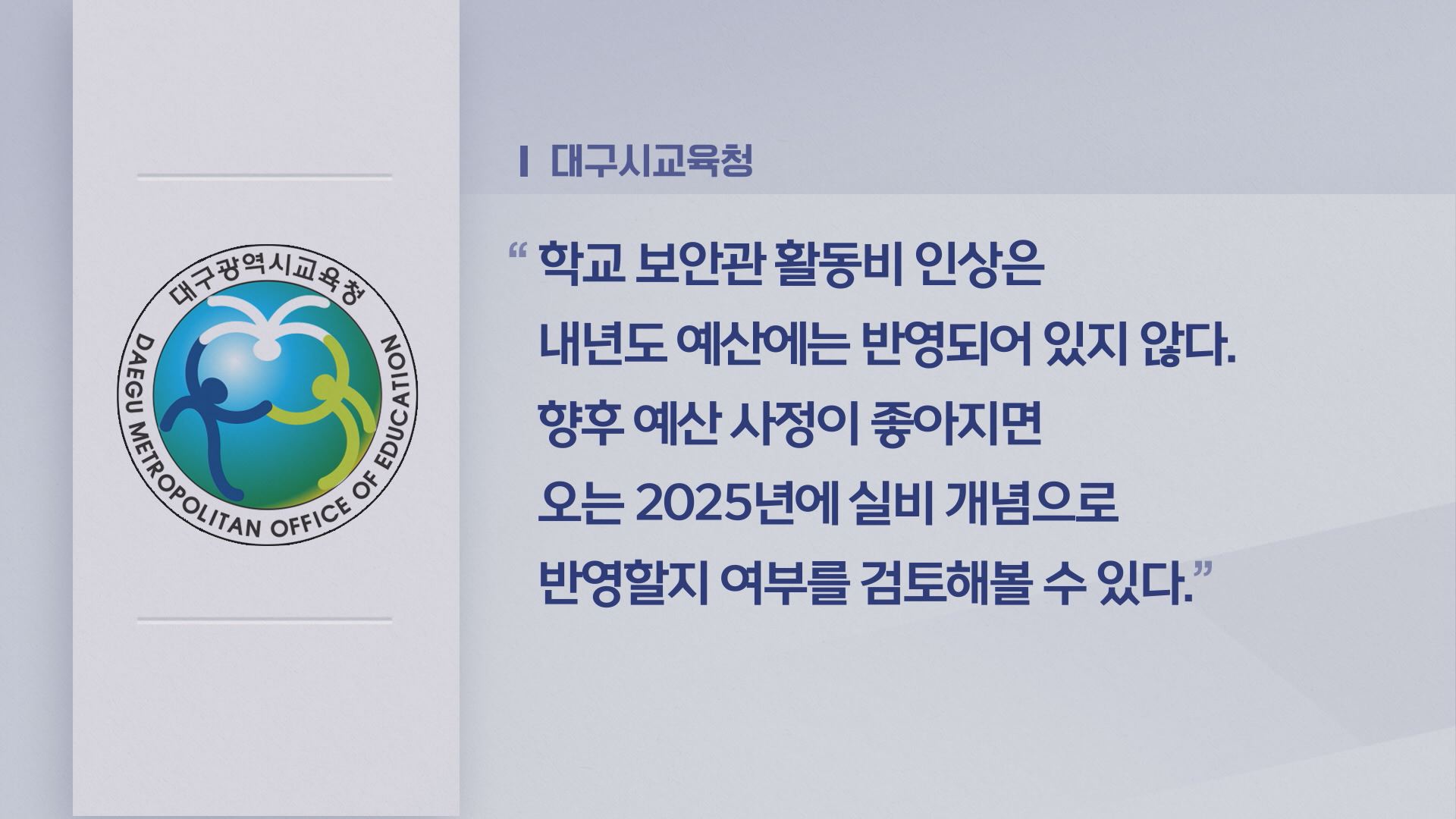 사정이 이런데도 대구시교육청은 2024년에도 학교 보안관 활동비 인상은 불가능하다는 입장인데요.