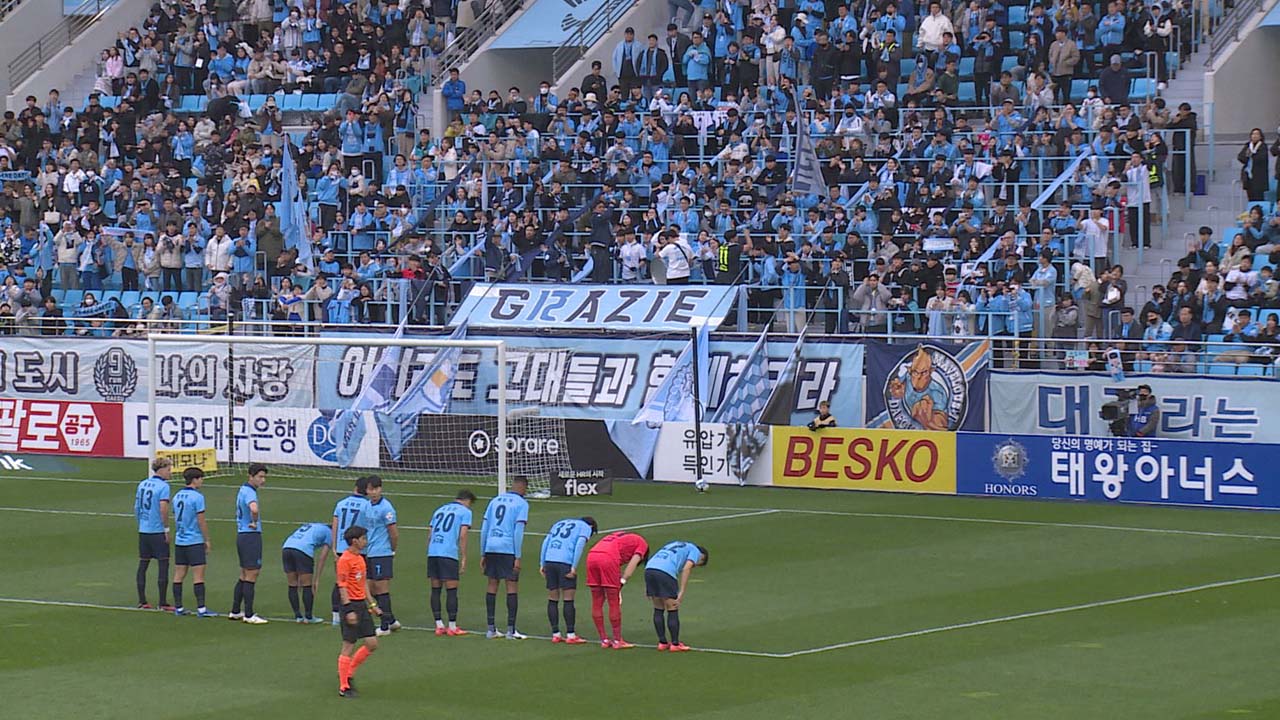 우승팀은 정해졌지만, 이번 마지막 라운드는 생존을 건 강등 싸움과 아시아 무대를 향한 티켓 경쟁 같은 순위 싸움도 여전한 상황입니다. 상대 인천 역시 AFC챔피언스리그 티켓이 걸려있는 순위 싸움을 이어가는 만큼 목표는 뚜렷하겠습니다만, 대구FC엔 순위나 성적보다 팀의 전설과 이별한다는 의미가 더 크게 자리하고 있는데요.