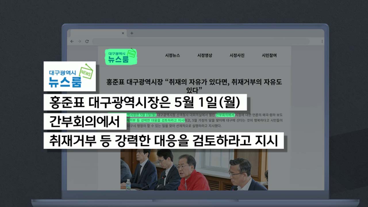 대구시와 산하기관, 사업소, 출자 출연기관에 이르기까지 취재 거부를 하지 말라는 공지를 공보관실 소속 직원이 알아서 했다는 주장인데, 정말 그랬을까요?