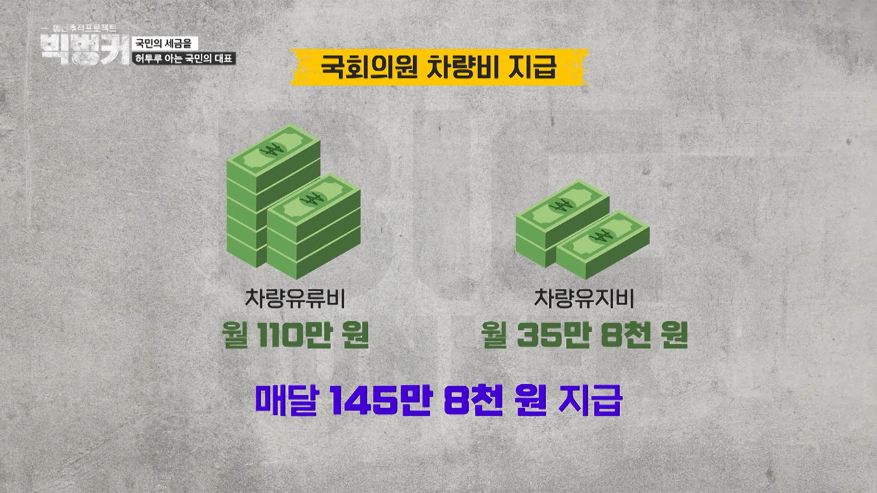 우지영 나라살림연구소 수석연구위원 "국회의원 입법 활동 차량비 지급 규정에 따르면 차량 유류비로 월 110만 원에 의원 차량 유지비로 월 35만 8천 원이 정액 지급됩니다. 매달 145만 8천 원이 지급되는 겁니다. 국회의원의 경우 차량 자체를 지원하지는 않아 엄밀히 말해 관용차가 아니라고도 할 수 있지만, 차량 유류비, 유지비 등을 지원하고 있기에 관용차나 다름없는 거죠. 차량 유지비, 렌탈비, 유류비가 국민 세금으로 지급되는 만큼 관용차를 사적으로 이용해서는 안 됩니다"