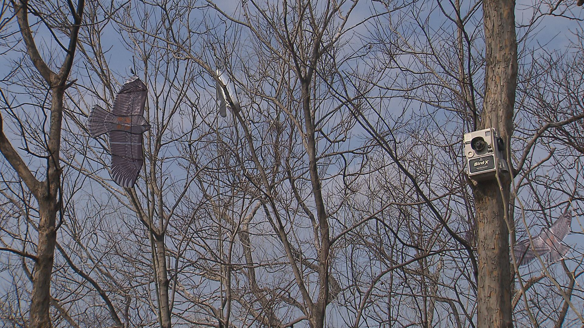 새들의 천적, 독수리 모형도 걸었습니다.
