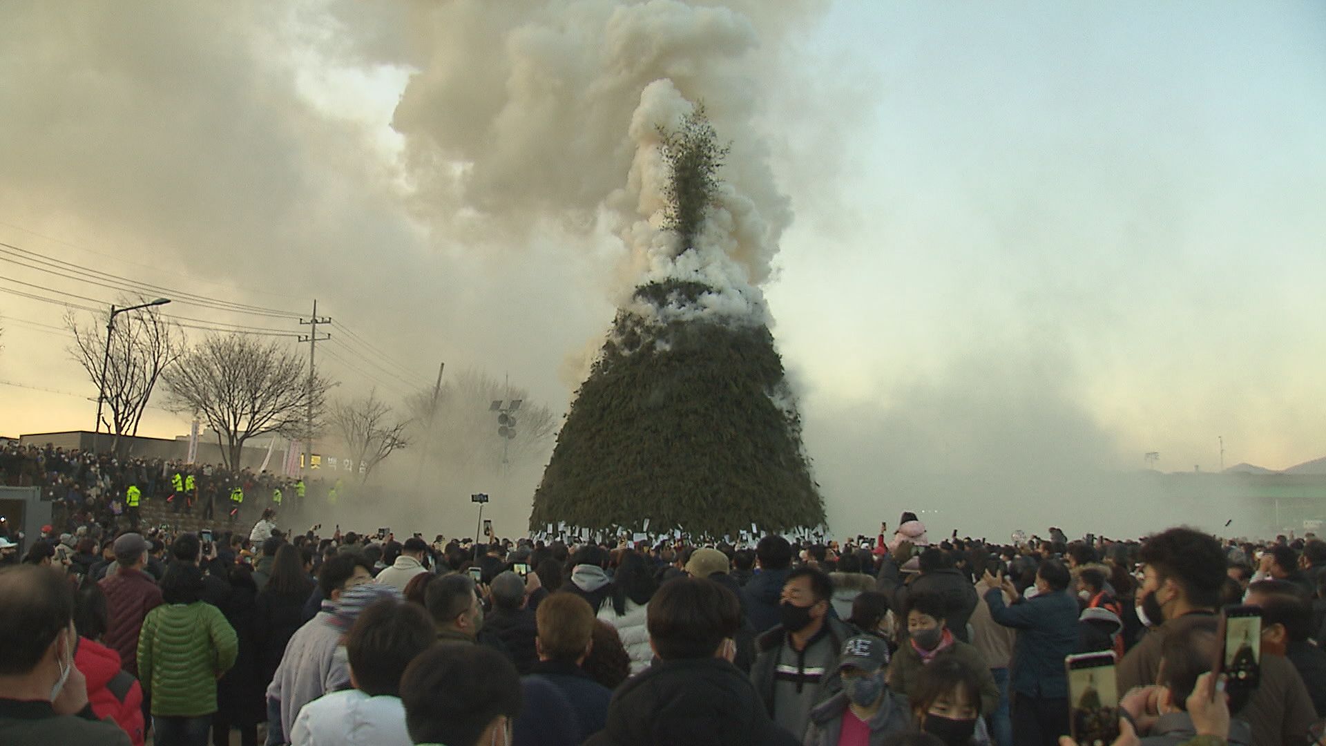 대부분 풍물놀이와 음식 나누기 등 사전·부대 행사에 이어 본행사인 달집태우기는 해가 지는 6시 15분쯤 지나 점화가 이뤄질 예정입니다.