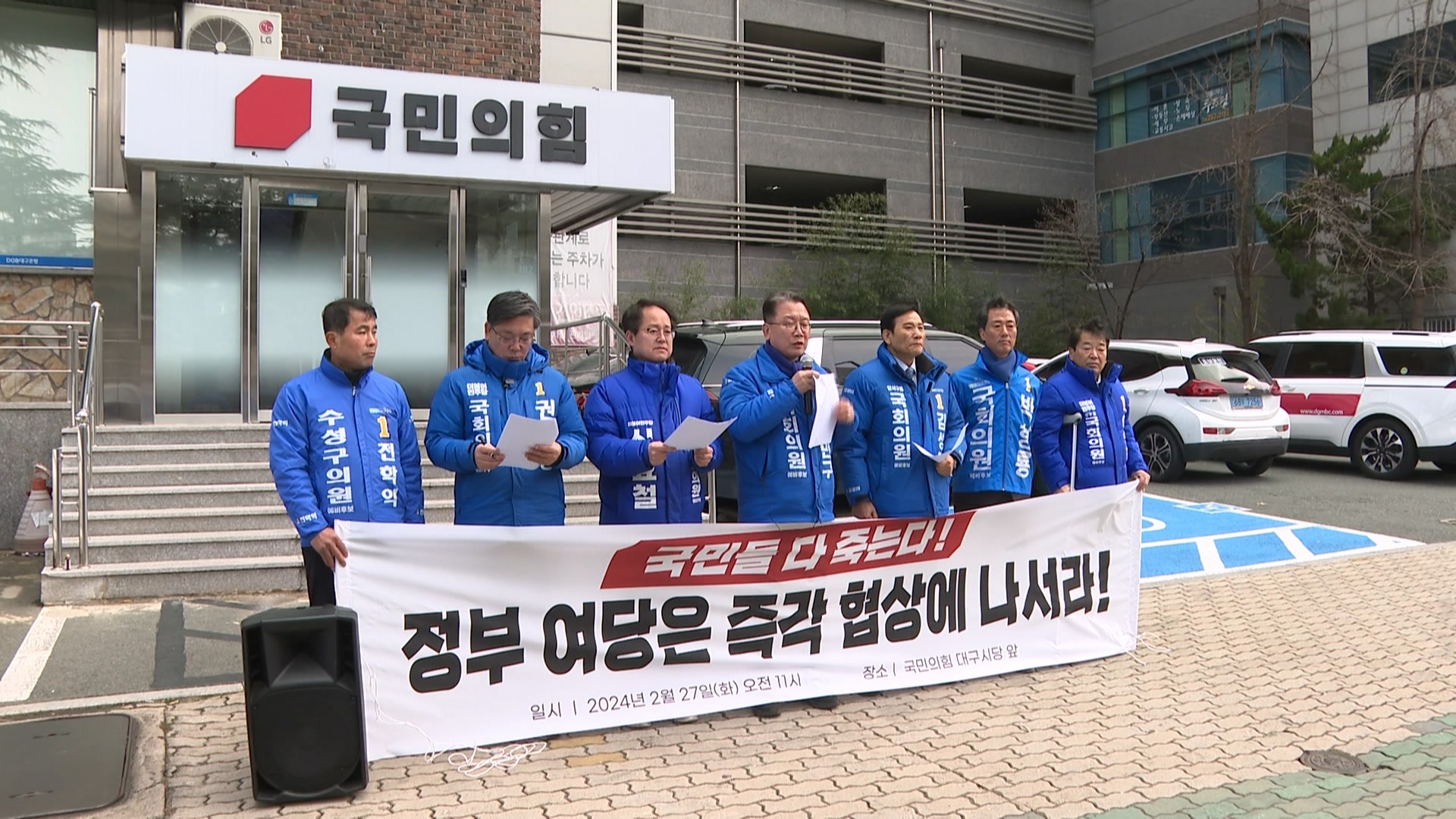 더불어민주당 총선 대구 지역 예비 후보자들은 2월 27일 국민의힘 대구시당 앞에서 기자회견을 열고, 정부와 여당에 의료 대란을 막기 위한 협상에 나서라고 촉구했습니다.