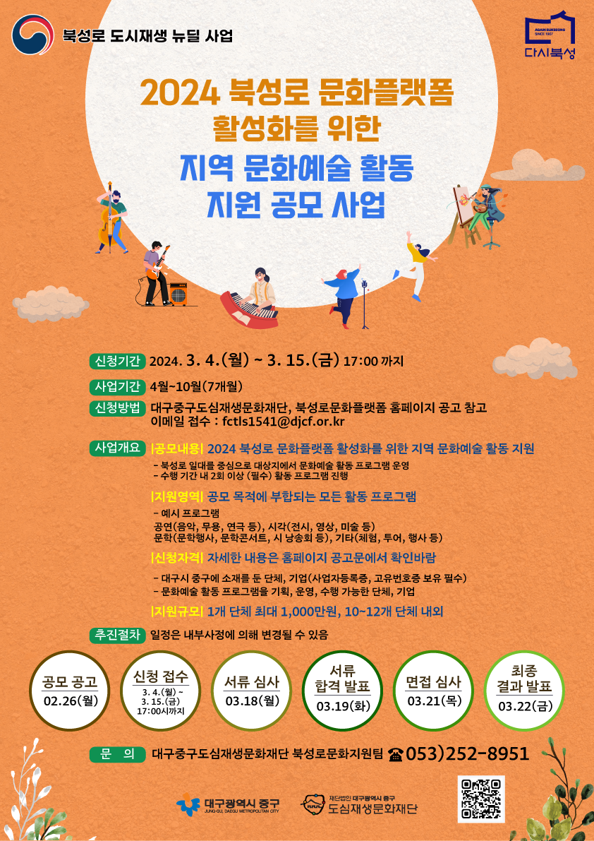 자세한 사항은 대구중구도심재생문화재단 또는 북성로 문화 플랫폼 홈페이지를 참고하면 됩니다.
