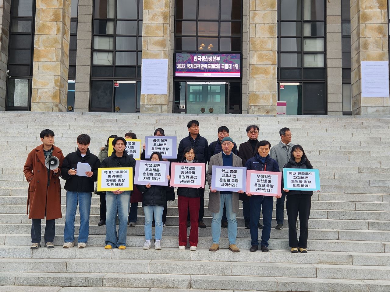 교수회는 "경북대 구성원들은 홍 총장이 4년간 성실하게 총장직을 수행할 것이라 믿었다"며 "더 이상 홍원화 총장을 신뢰할 수 없다. 신뢰받지 못하는 총장은 그 직을 제대로 수행할 수 없다"고 강조했습니다.