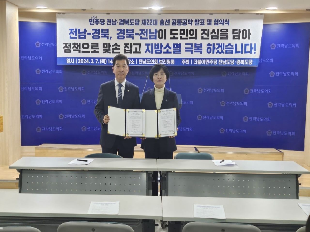 민주당 경북도당, 전남도당은 3월 7일 전남도의회에서 '22대 총선 공통 공약 협약식'을 열고, 지역 소멸을 막기 위한 6개 공약을 발표했습니다.