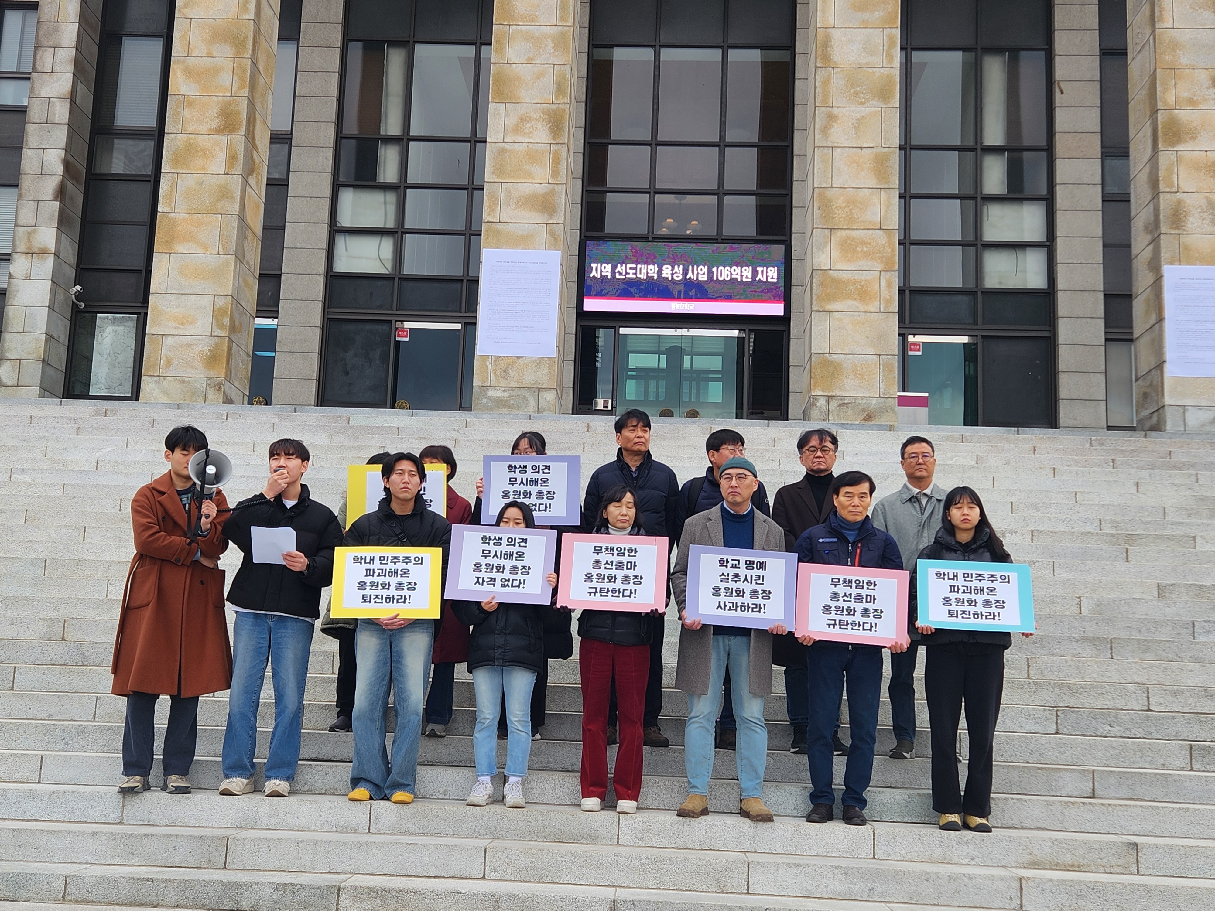 "학교 명예 실추시킨 홍원화 총장 퇴진하라"