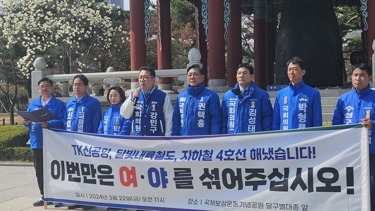 제22대 국회의원 선거 후보 등록을 마친 더불어민주당 대구 후보 8명이 합동 기자회견을 열고 이번 선거는 정권 심판이라고 강조했습니다.