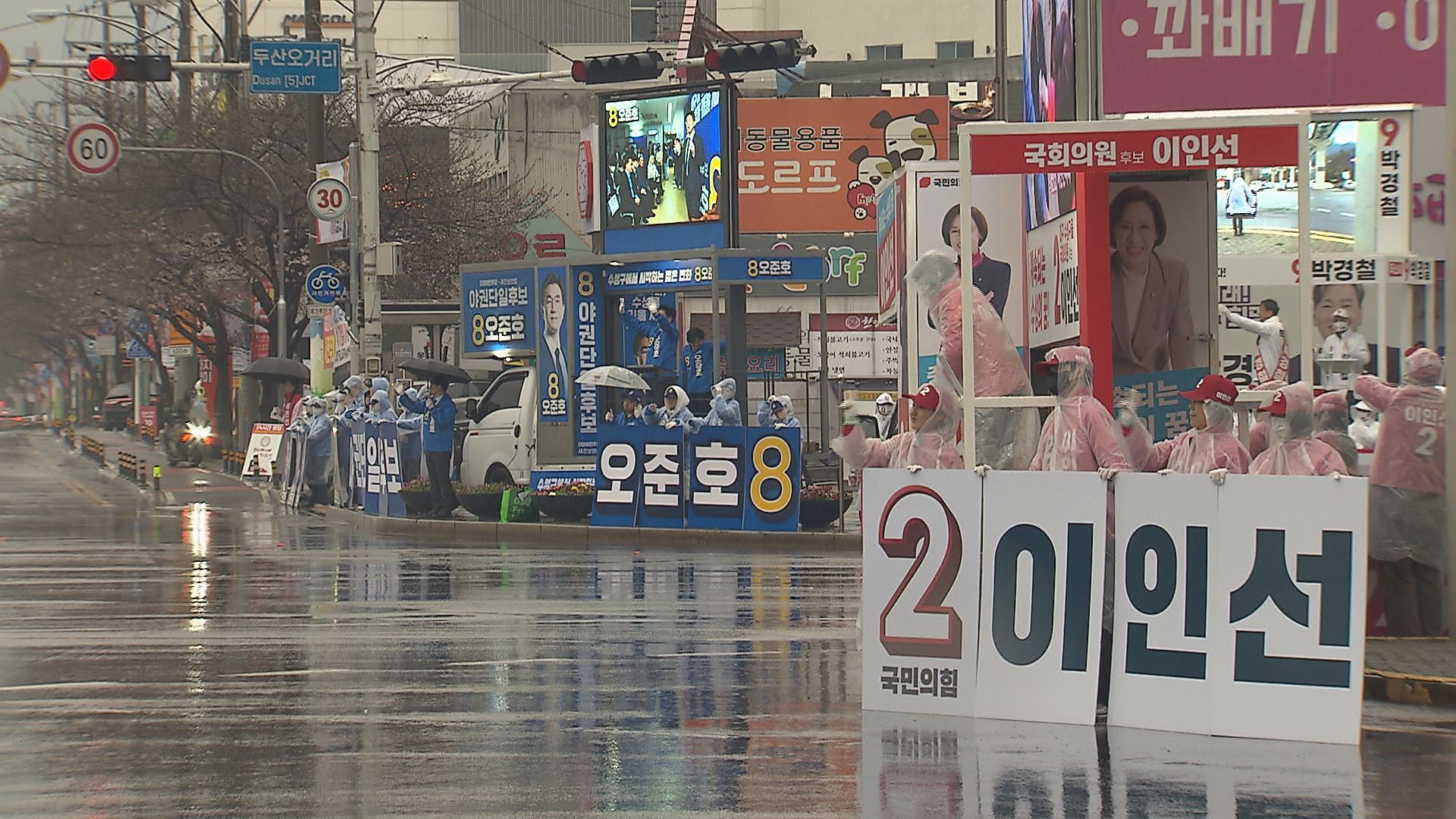 범어네거리, 두류네거리, 두산오거리 등 대구 시내 주요 교차로마다 한 표라도 더 얻기 위한 뜨거운 선거전이 펼쳐지고 있습니다.