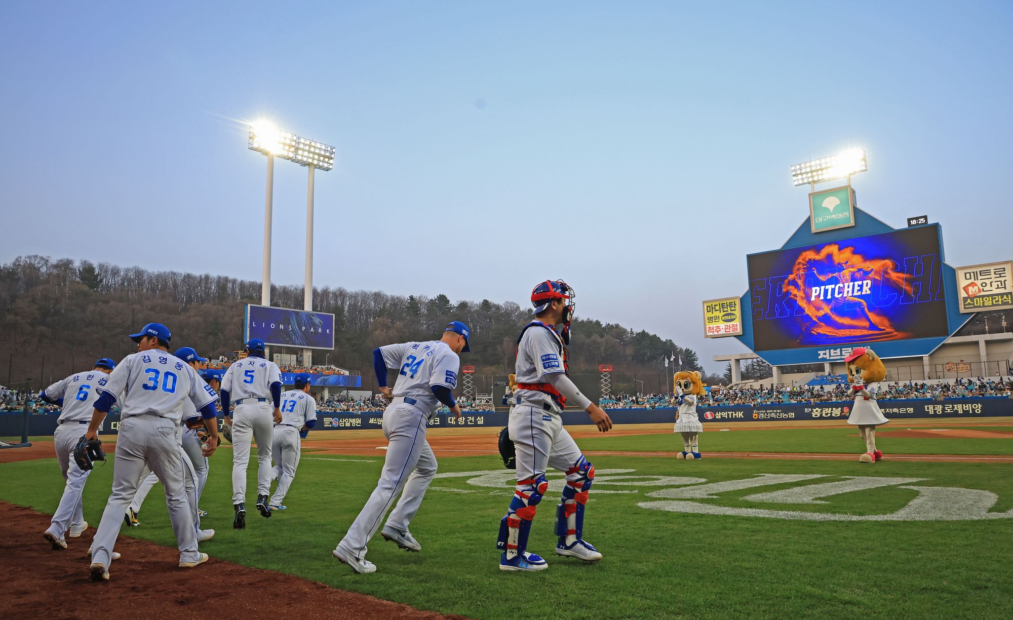대구삼성라이온즈파크 개막 경기에서 삼성이 홈런에 특화된 홈구장 특성에 눈물을 흘렸습니다.