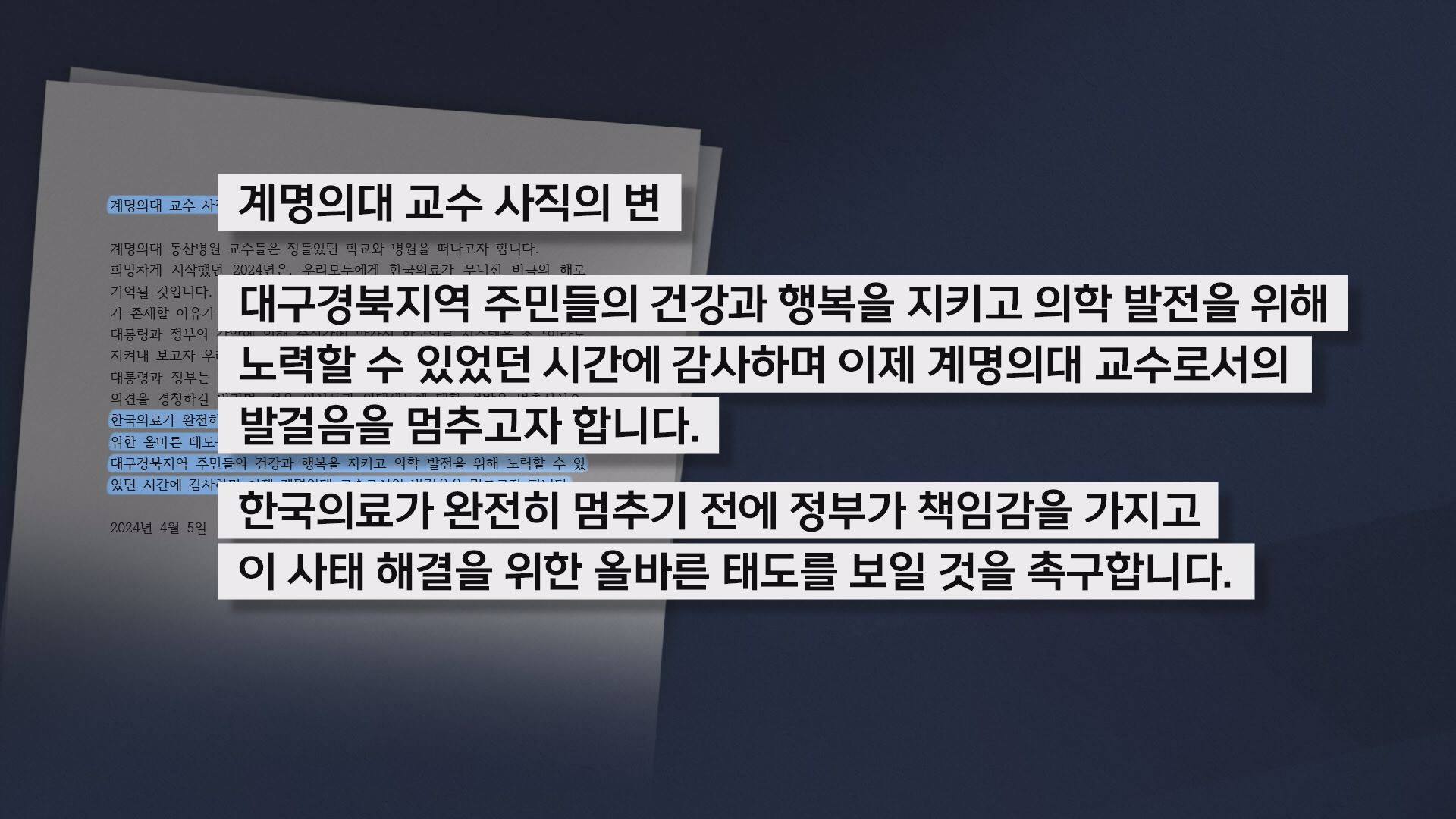 지난주 금요일, 그러니까 4월 5일 계명대학교 동산병원 교수회 비대위는 그간 비대위 소속 교수들이 제출한 사직서를 학교에 제출했다고 밝혔습니다.